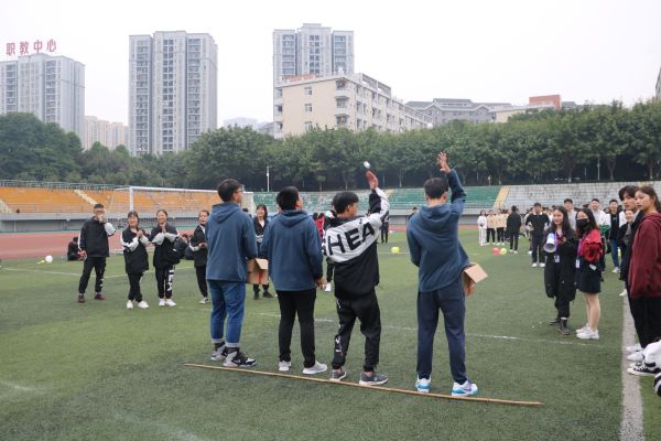 接下来将目光放在六人七足上,这是一个极其考验团队默契与合作的项目。六名同学一组,成一自排开捆绑成“七脚”从起点走到终点,看那组同学用事时最短。当口哨一响,每组同学都喊着121向终点奔去。再看向争分夺秒,这可真是争分夺秒哇!每位同学都需用杯子装满水,围着路途中所遇到的凳子绕一圈再跑向终点,并将杯子里的水倒入瓶子内再跑回起点后下一名才能出发。每位同学都健步如飞并且杯子里的水都毫无洒落。下面是抛绣球,这考验了同学们的力量,虽说球不重但需要的力量却不好掌控,一个不小心就会抛出范围以外或者是抛不进箱子中。其他活动也进行得如火如荼,整个操场已经“燃”起来了。