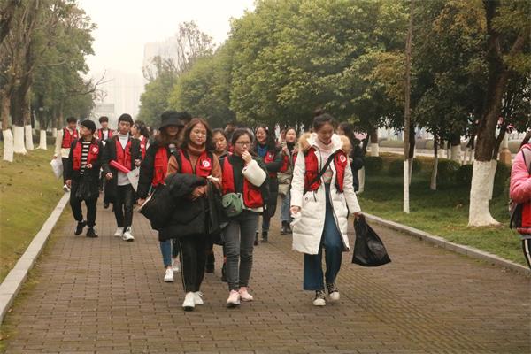 12月14日下午14时,参加此次活动的志愿者们在大东门集合完毕后。此次“‘一’路前行,‘义’路相伴”志愿活动正式开始。为积极响应国家号召,致力推进涪陵城区创建工作,建设文明城区。志愿者们选择了徒步的方式绿色出行。在路上,志愿者们发扬了优良的志愿者精神,体现了环保意识,清理沿途的垃圾,为创建国家卫生城市贡献力量,看见横穿马路的行人上前制止,展现了公司学子优秀的精神风貌。在经过一个小时的行走后,志愿者们顺利抵达了此次活动的目的地——涪陵区铜鼓湖公园。