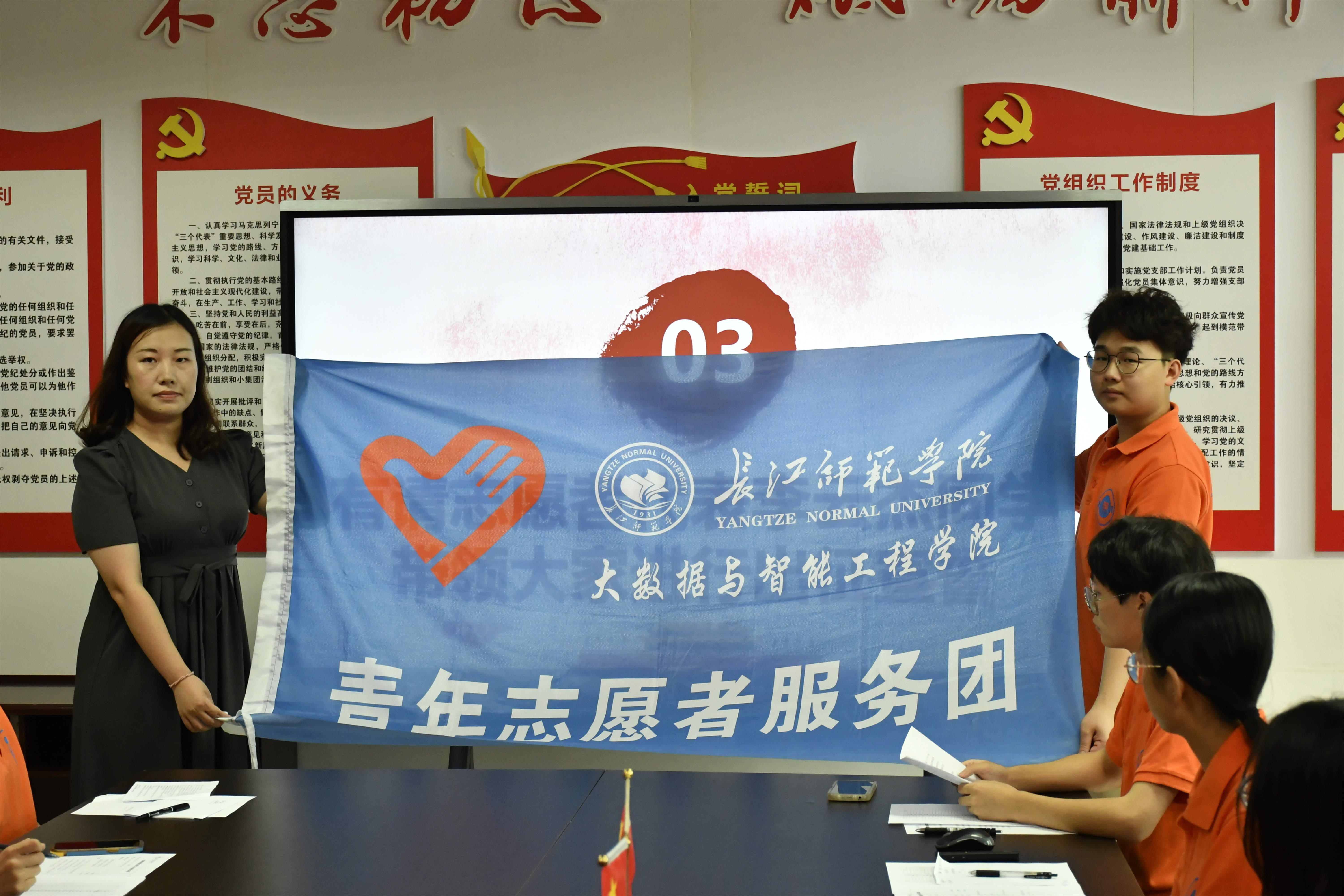 会议伊始,由李梦莹老师为“逐梦”青年志愿者服务团授旗。然后,志愿者代表李云杰同学发言,并带领志愿者服务团成员进行宣誓,承诺将始终坚定理想信念,深入基层一线,弘扬并践行志愿精神,为社会发展贡献出一份青春力量。